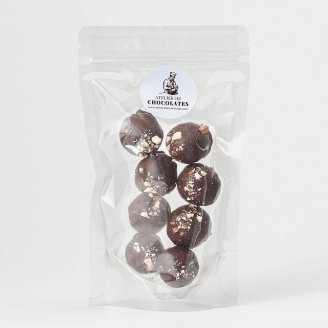 Nuestras trufas de chocolate amargo 70% rellenas de almendras, una combinación perfecta de intensidad y crocancia. Elaboradas con cacao de alta calidad, estas trufas ofrecen un sabor profundo de chocolate oscuro con un cremoso relleno de almendras, que aporta un toque crujiente y delicioso. Perfectas para disfrutar como un capricho gourmet o para sorprender con un regalo sofisticado, estas trufas son una experiencia irresistible para los amantes del chocolate y los frutos secos.